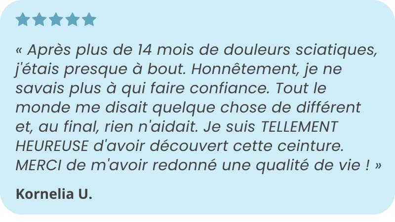 Résultat : soulagement rapide de la sciatique et des maux de dos, avec des bénéfices durables en utilisation régulière.